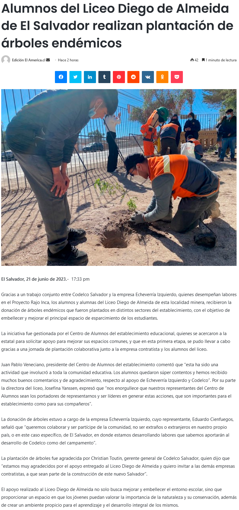 Alumnos del liceo Diego de Almeida plantan árboles endémicos - (El Diario de Atacama)