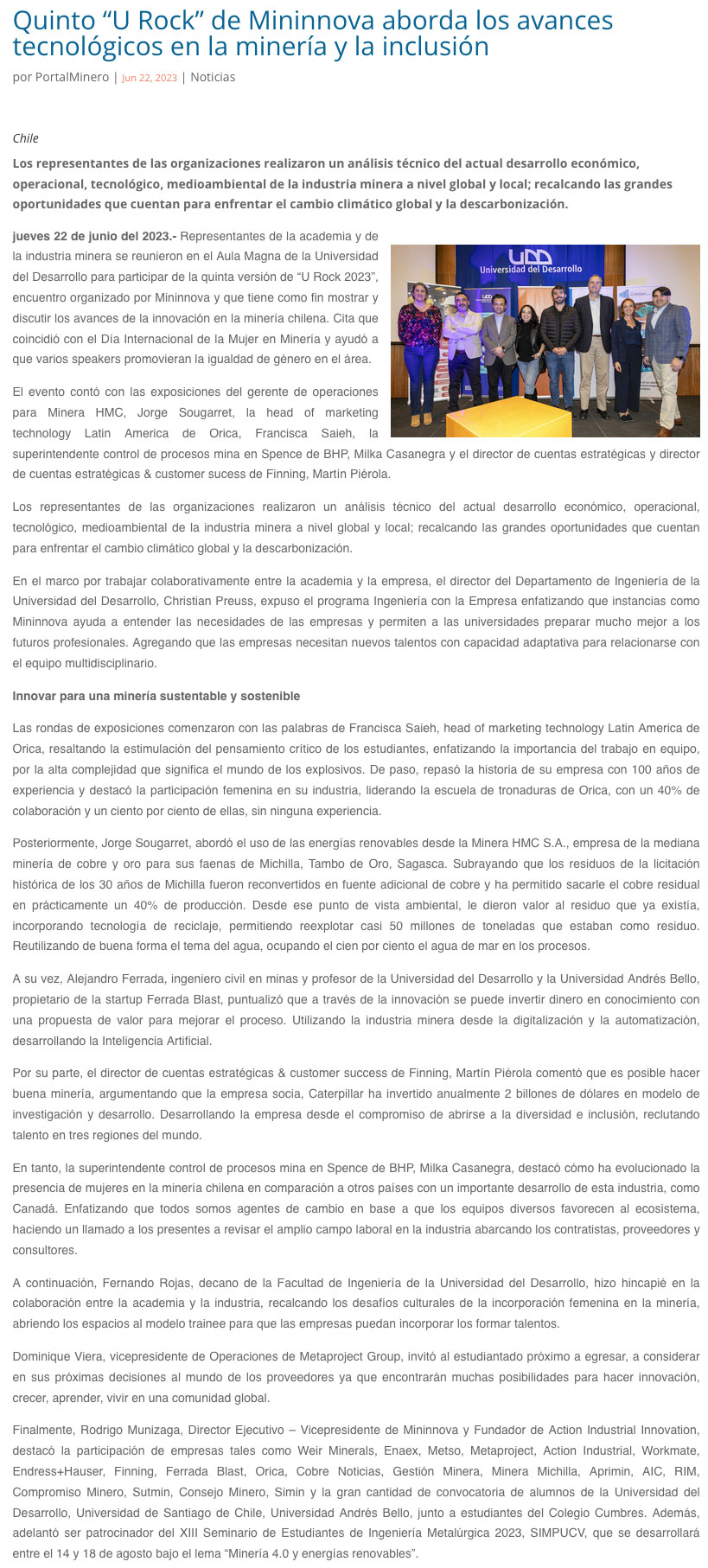 Quinto “U Rock” de Mininnova aborda los avances tecnológicos en la minería y la inclusión - (mvcomunicaciones.cl)