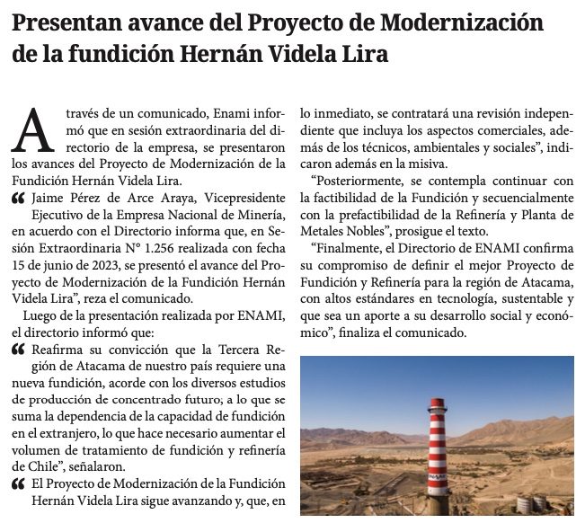 Avanza el Proyecto de Modernización de la Fundición Hernán Videla Lira en Atacama - (reporteminero)