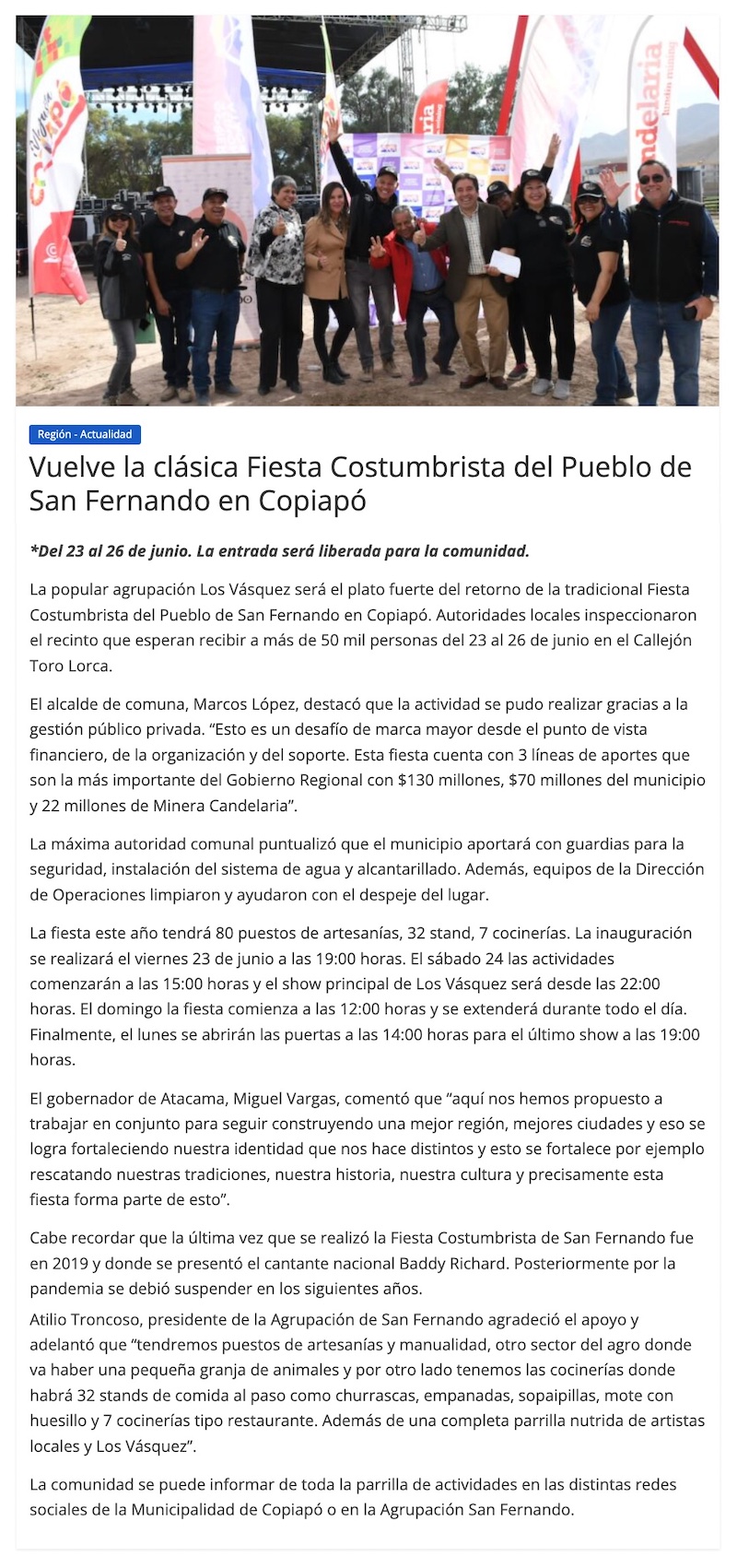 Unas 50 mil personas esperan recibir en la Fiesta Costumbrista - (El Diario de Atacama)