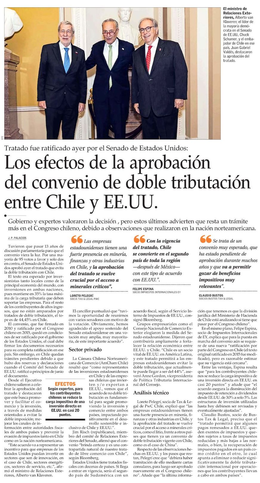 Tras 13 años de tramitación, Senado de Estados Unidos aprueba tratado que evita doble tributación con Chile - (Pulso)