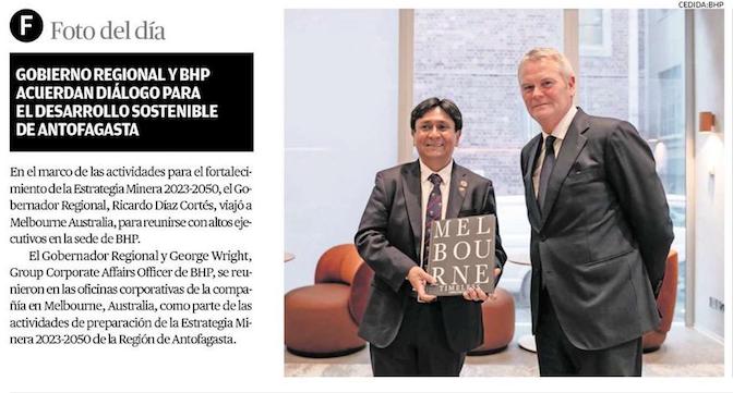 Gobierno Regional y BHP trabajarán por el desarrollo sostenible de Antofagasta - (El Mercurio de Calama)