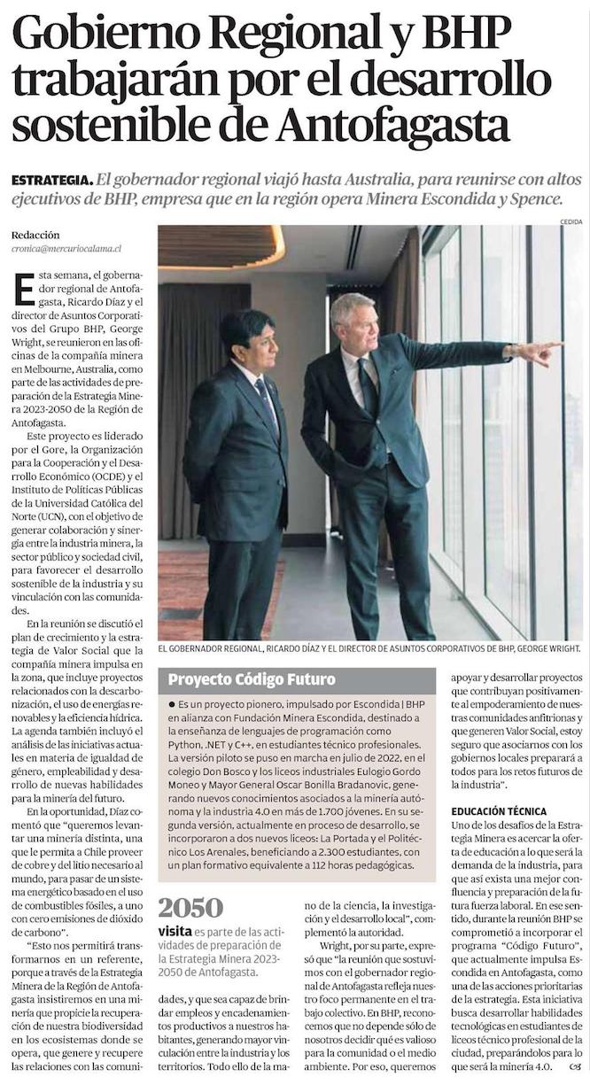Gobierno Regional y BHP acuerdan oportunidades futuras para el desarrollo sostenible de Antofagasta - (diarioangamos)