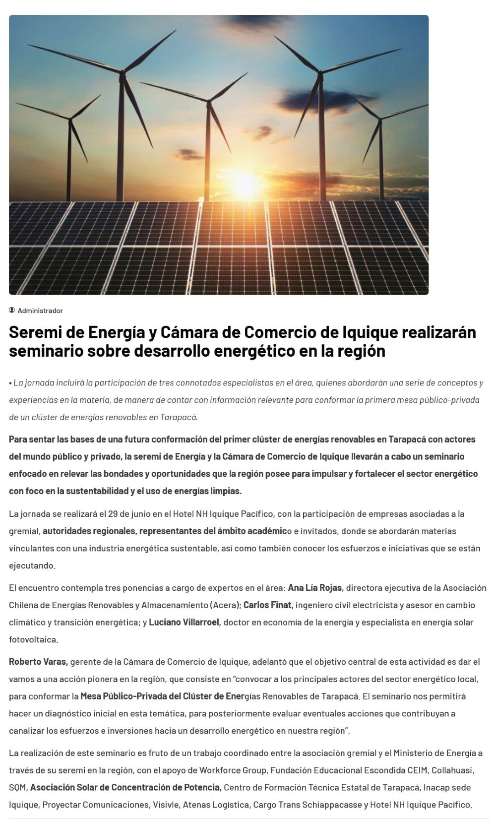 Seremi de Energía y Cámara de Comercio de Iquique realizarán seminario sobre desarrollo energético en la región - (ceinoticias.cl)