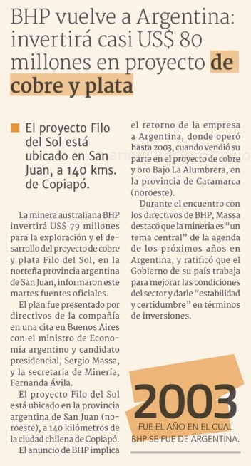 Gigante minera BHP regresa a Argentina con inversión de US$ 79 millones en proyecto de cobre y plata - (dfsud.com)