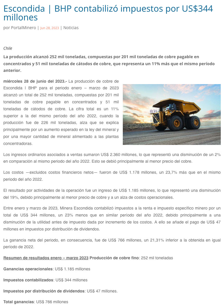 Escondida | BHP contabilizó impuestos por US$344 millones en el primer trimestre del año - (timeline)