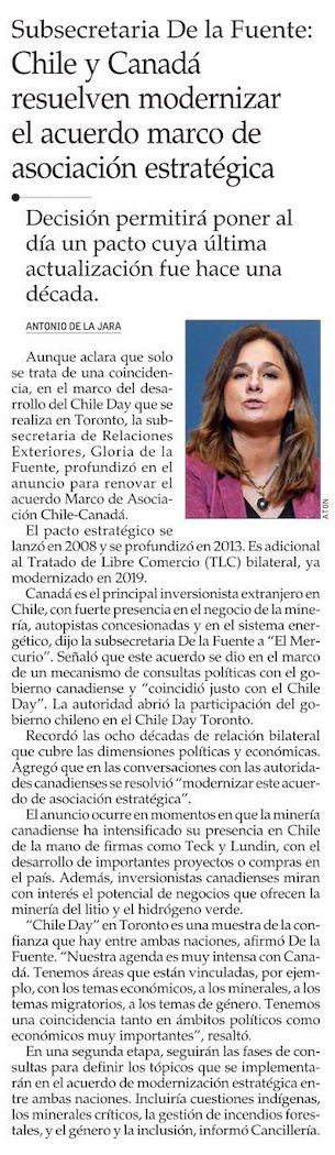 Chile Day en Toronto: MOP anticipa pronto inicio de nuevas concesiones y Marcel insiste en lograr pacto fiscal - (Pulso)