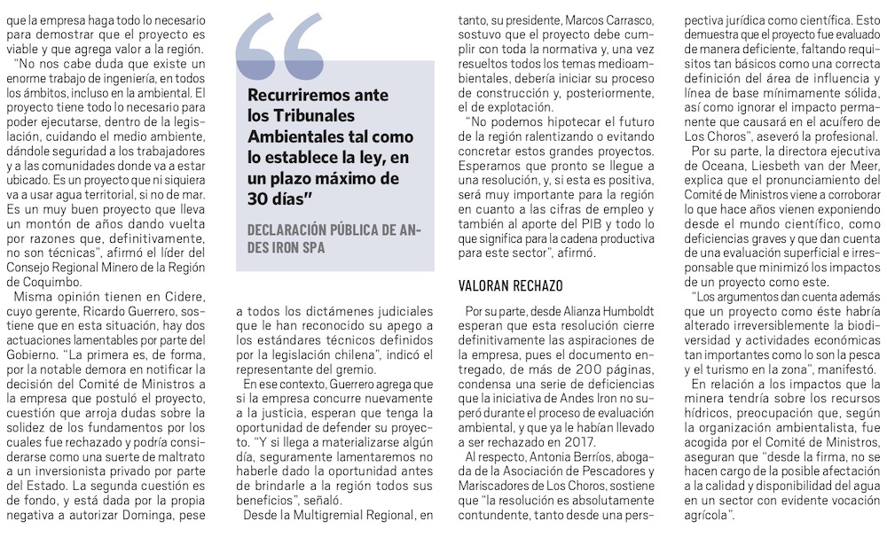 Publican veredicto sobre la iniciativa Dominga, y firma controladora anuncia recurso ante Tribunal Ambiental - (El Mercurio de Santiago)