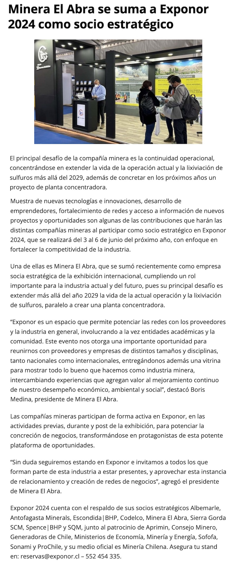 El Abra se suma a Exponor 2024 como Socio Estratégico - (revistacrisol.cl)