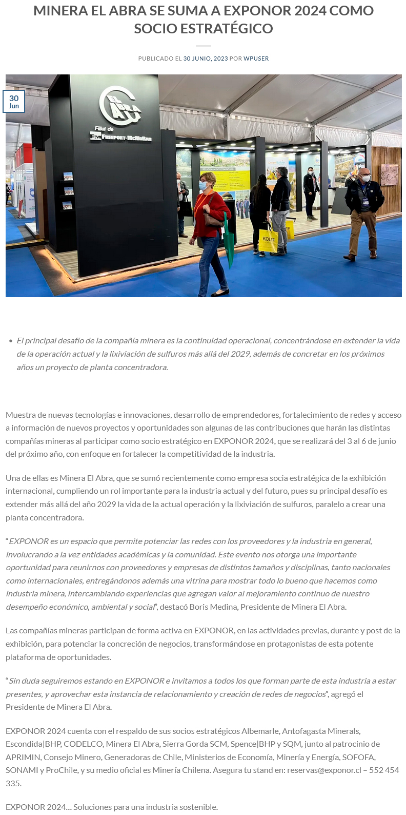 El Abra se suma a Exponor 2024 como Socio Estratégico - (revistacrisol.cl)