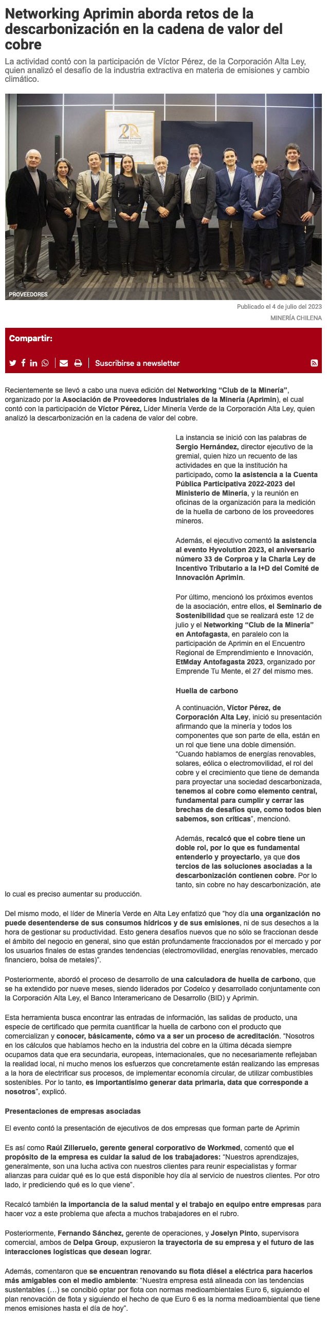 Networking "Club de la Minería" - Descarbonización en la cadena de valor, ruta hacia cero emisiones - (emol)