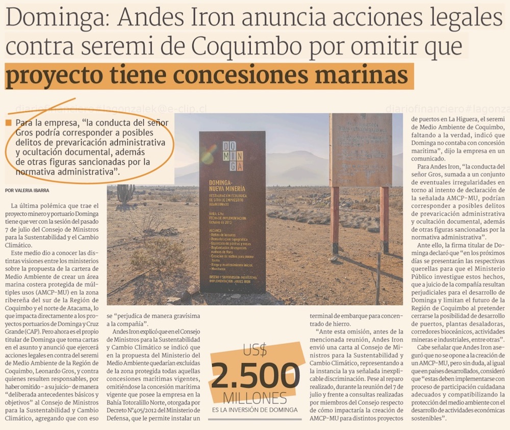 Andes Iron se querellará contra seremi de Coquimbo por proyecto Dominga - (Pulso)