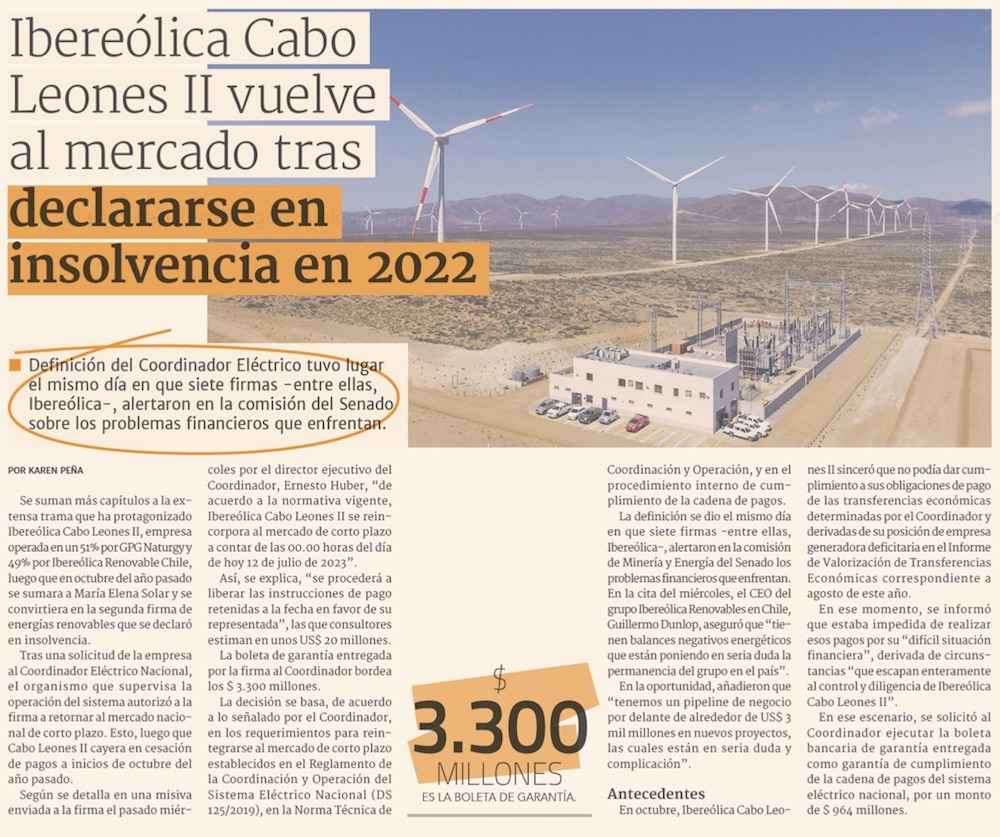 Pese a quejas por complicaciones, proyecto de Ibereólica vuelve a operar - (El Mercurio de Santiago)