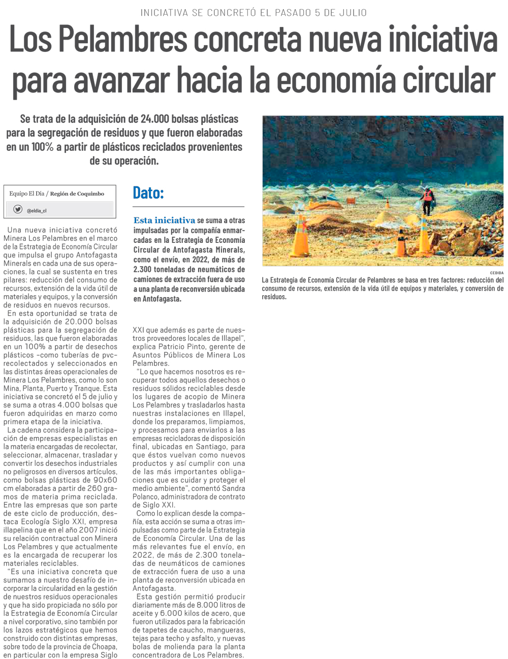 Los Pelambres concreta nueva iniciativa en su desafío de avanzar hacia la economía circular - (Semanario Tiempo)