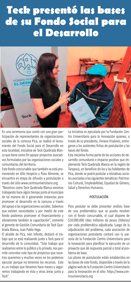 Teck presentó las bases del Fondo Social para el Desarrollo en la comuna de Pica - (Estrella de Iquique)
