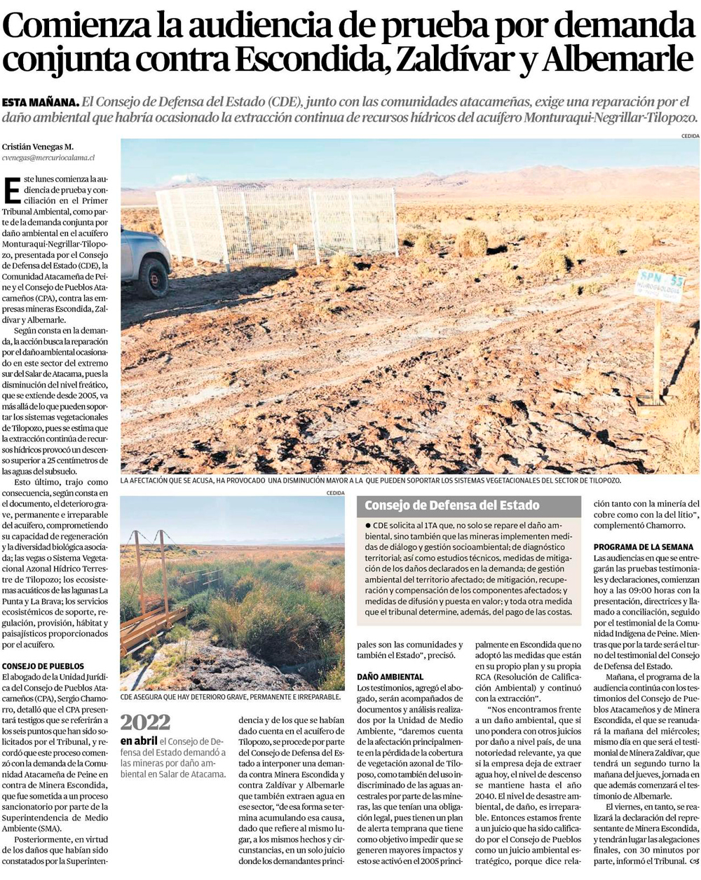 Comienza la audiencia de prueba por demanda conjunta contra Escondida, ZaldÃvar y Albemarle - (El Mercurio de Antofagasta)