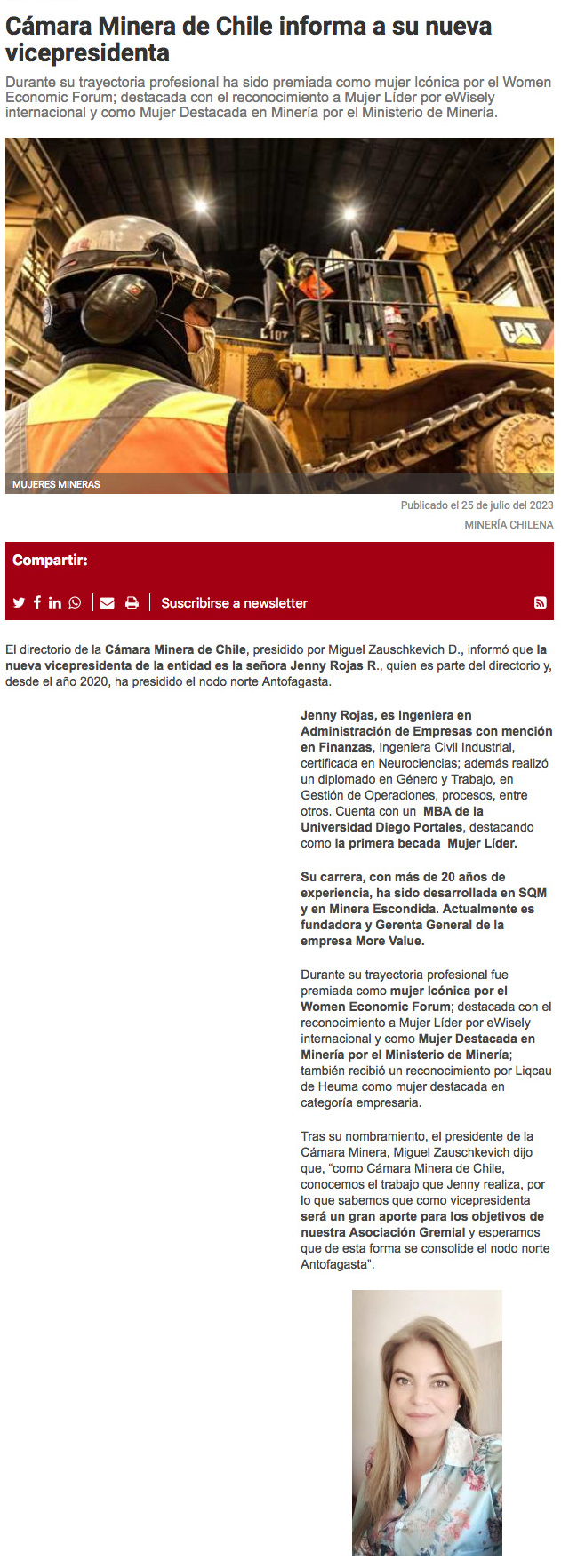 Jenny Rojas es la nueva vicepresidenta de la Cámara Minera de Chile - (portalinnova.cl)