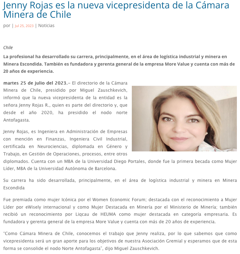 Jenny Rojas es la nueva vicepresidenta de la Cámara Minera de Chile - (mvcomunicaciones.cl)