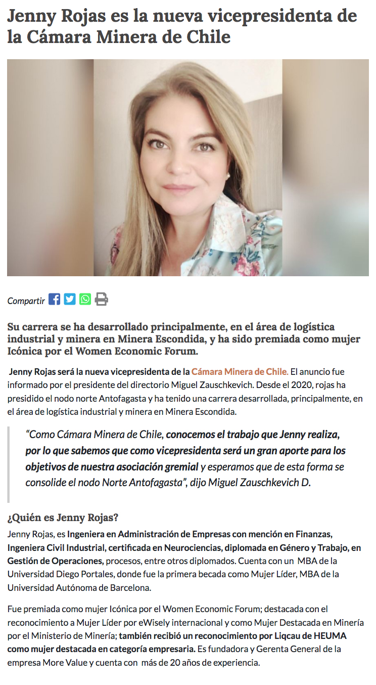 Jenny Rojas es la nueva vicepresidenta de la Cámara Minera de Chile - (portalinnova.cl)