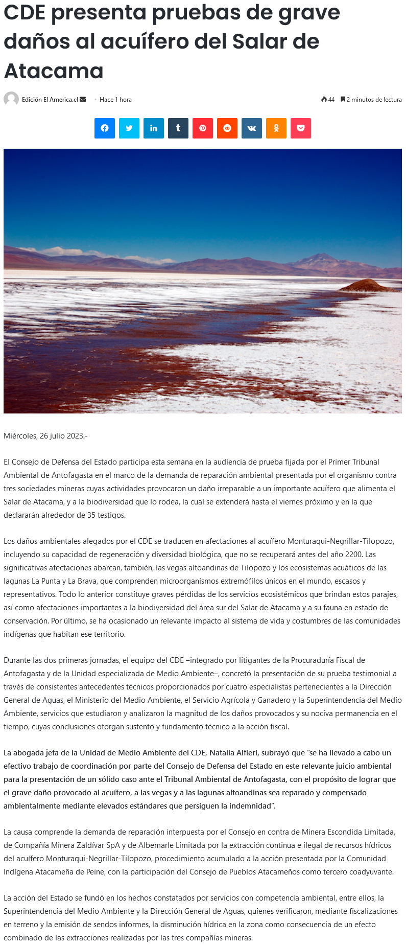 CDE presentó en Tribunal Ambiental pruebas del daño causado por mineras al Salar de Atacama - (cooperativa online)