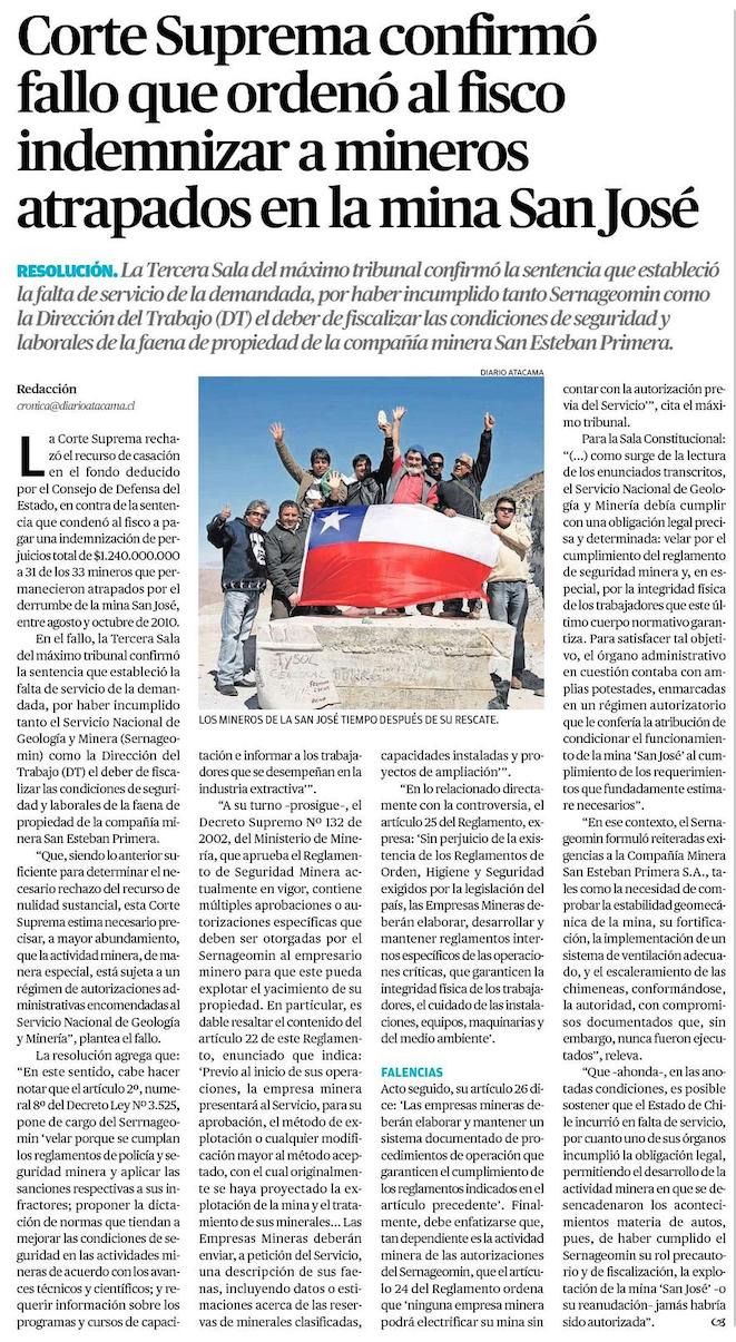 Definitivo: El Fisco deberá indemnizar con 1.240 millones de pesos a 31 de los 33 mineros - (cooperativa online)