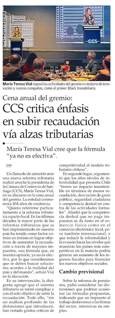 La CCS advierte de efectos negativos de aumentar la recaudación solo a través de alzas de impuestos - (Diario Financiero)
