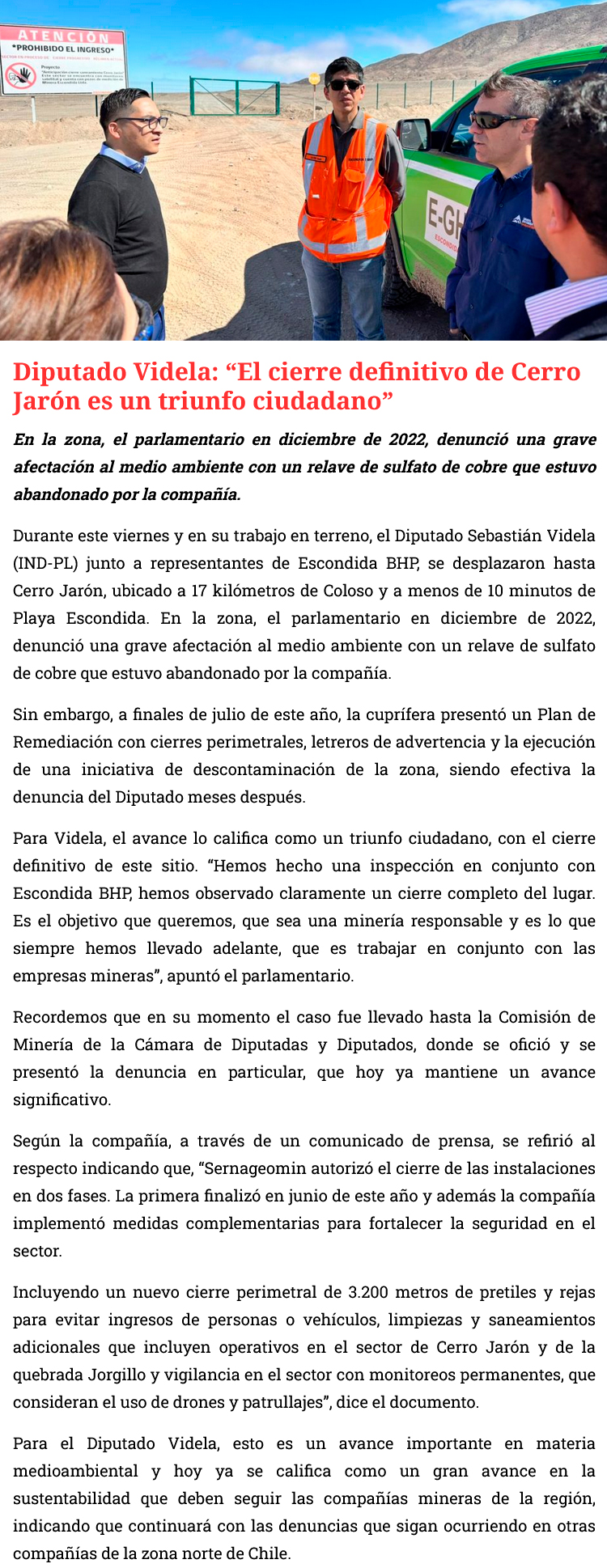 Diputado Videla: “El cierre definitivo de Cerro Jarón es un triunfo ciudadano” - (diarioangamos)