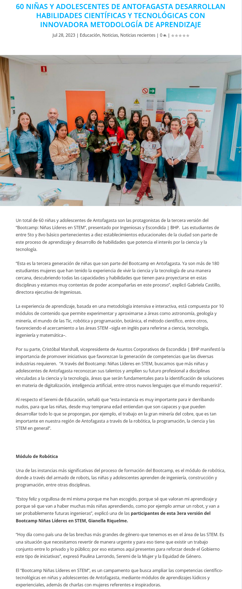 60 niñas y adolescentes de Antofagasta desarrollan habilidades científicas y tecnológicas con innovadora metodología de aprendizaje - (diarioangamos)