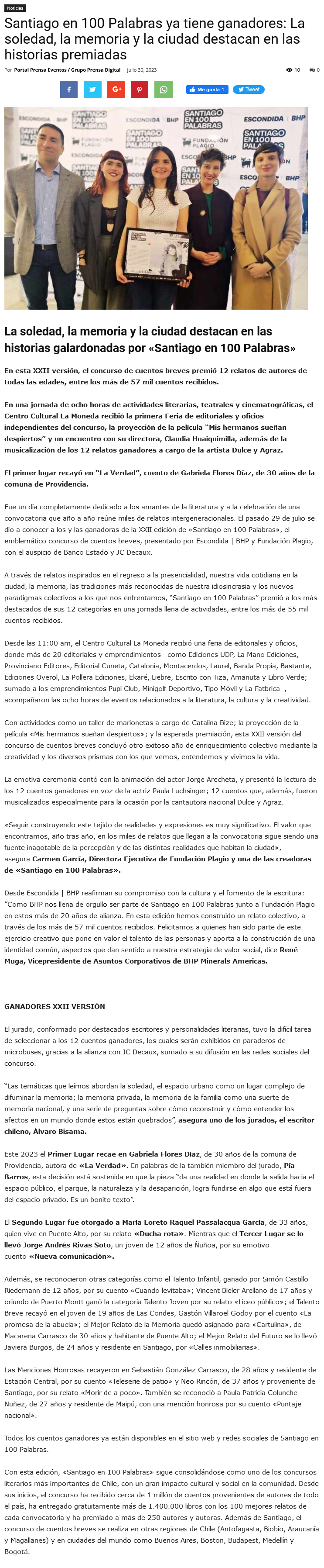 La soledad, la memoria y la ciudad destacan en las historias galardonadas por “Santiago en 100 Palabras” - (elperiodista.cl)