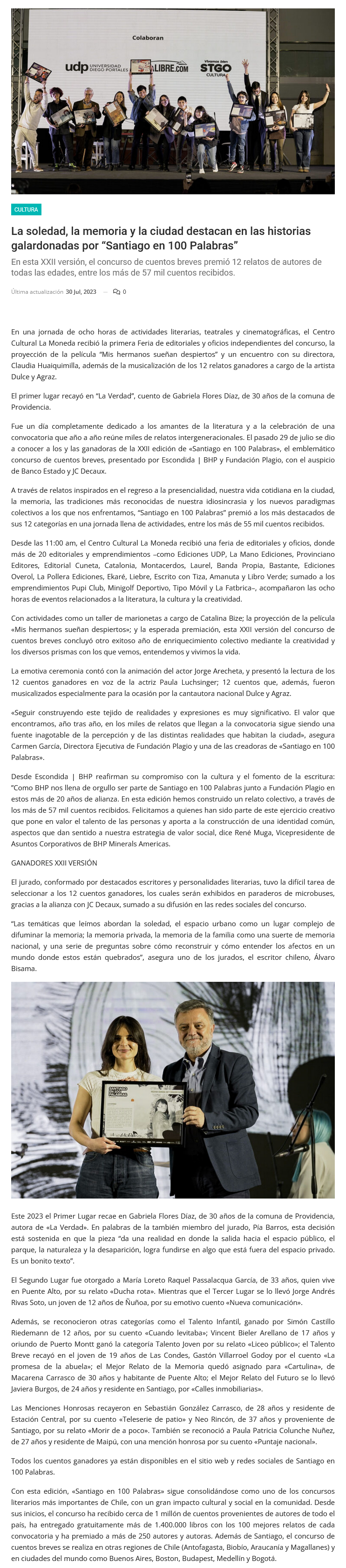 Santiago en 100 Palabras ya tiene ganadores: La soledad, la memoria y la ciudad destacan en las historias premiadas - (prensaeventos.cl)