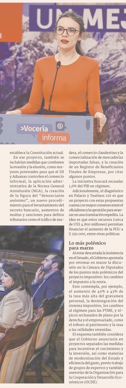Pacto fiscal: primer proyecto que enviaría el gobierno será el de procrecimiento y alza de impuestos queda para marzo - (Pulso)
