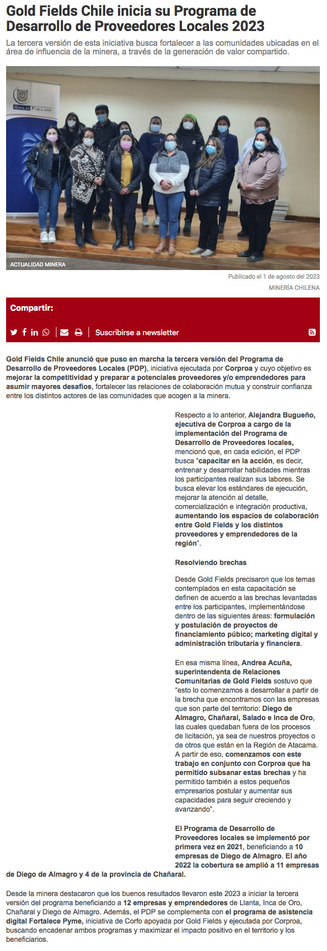 Gold Fields Chile dio inicio a su Programa de Desarrollo de Proveedores locales 2023 - (madero.cl)