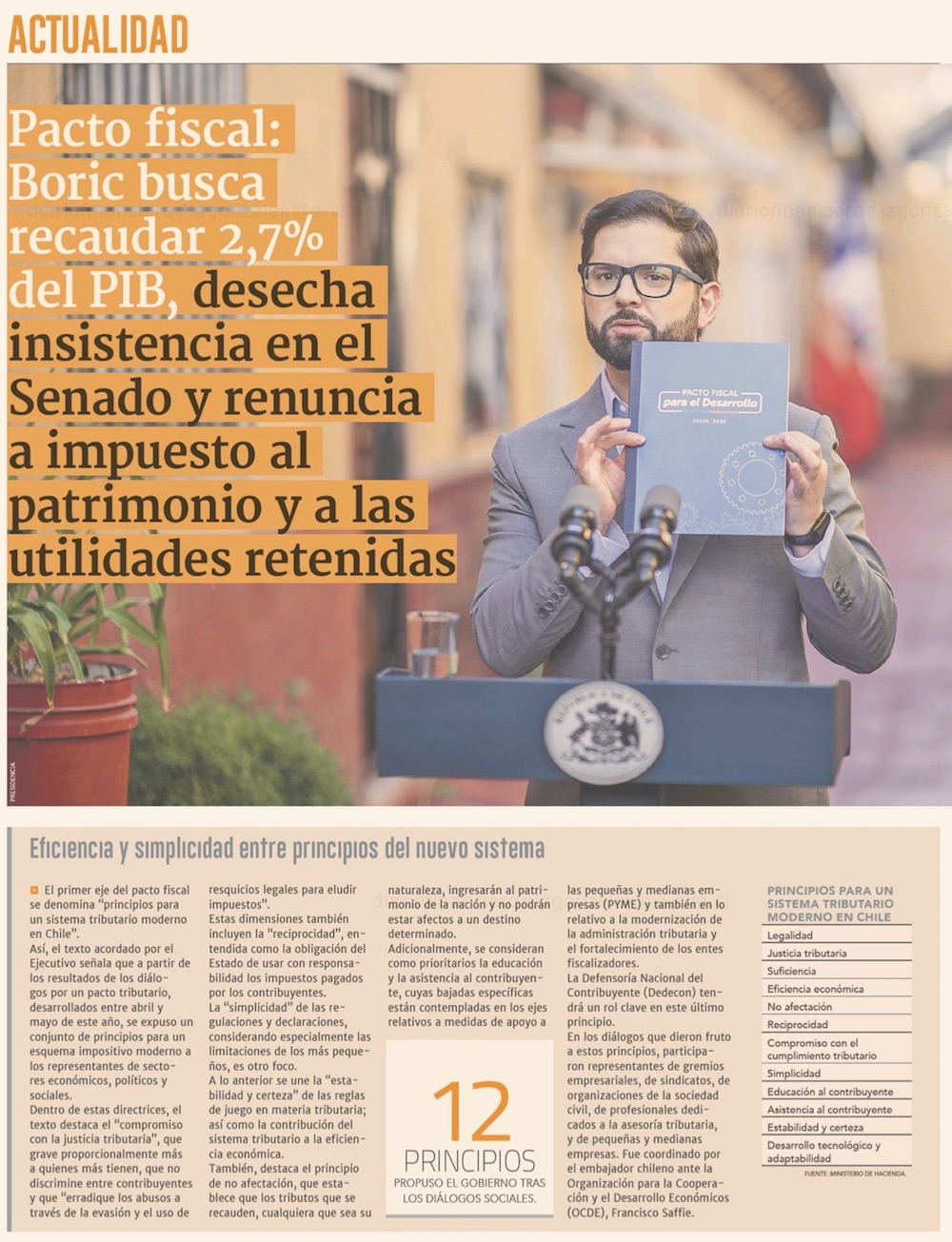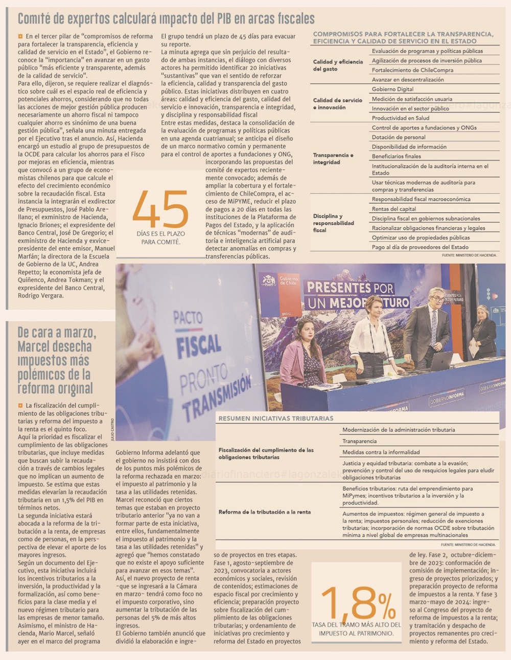Pacto fiscal plantea estabilidad de 10 años y alza tributaria se retomaría sin impuesto patrimonial - (El Mercurio de Santiago)