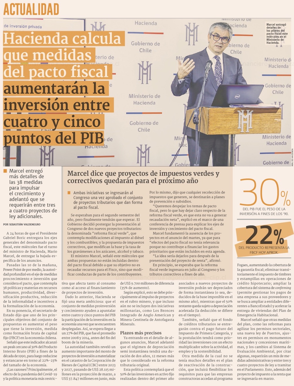 Ministro Marcel describe la batería de medidas para impulsar nuevas inversiones en el país - (El Mercurio de Santiago)