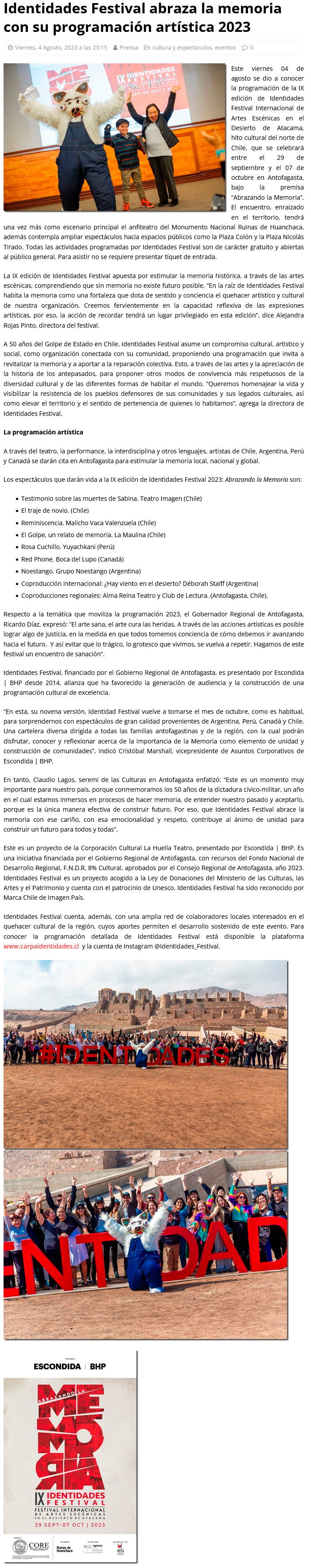 Identidades Festival abraza la memoria con su programación artística 2023 - (regionalista.cl)