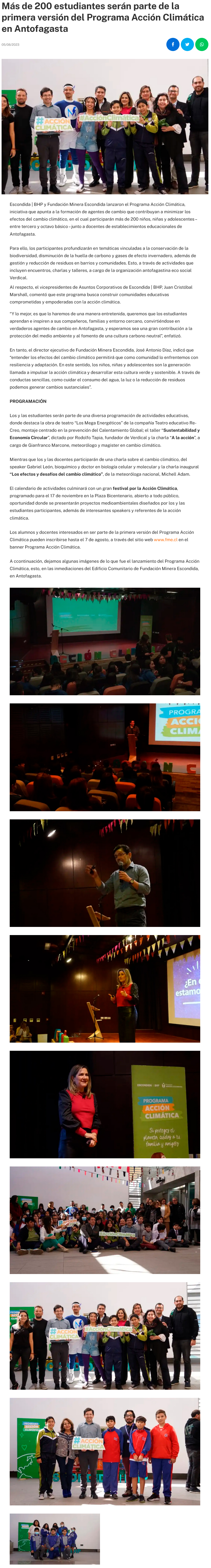 Más de 200 estudiantes serán parte de la primera versión del Programa Acción Climática en Antofagasta - (timeline)