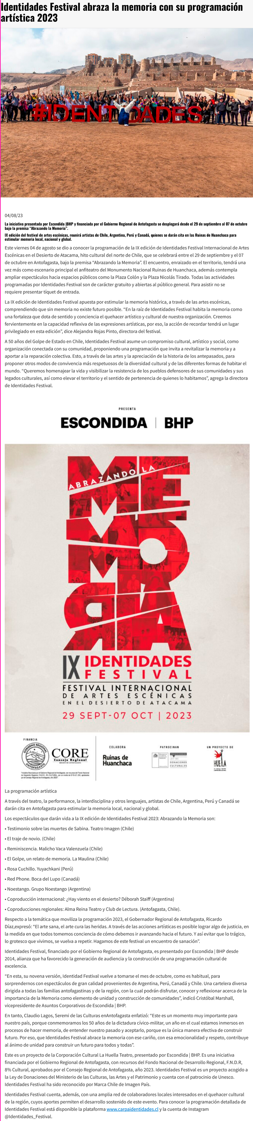 Identidades Festival abraza la memoria con su programación artística 2023 - (antofagastanoticias)