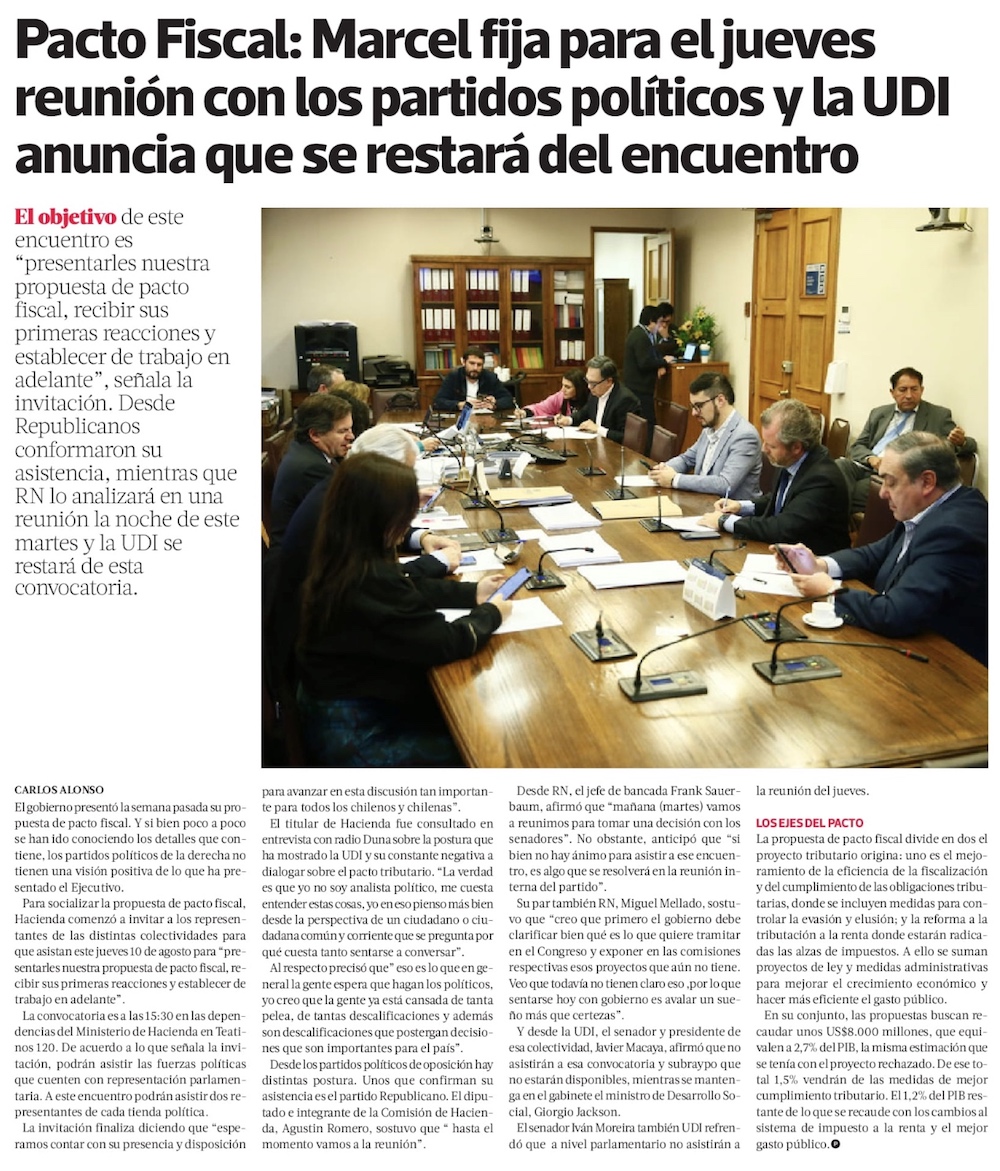Gobierno pasa a la ofensiva: cierra filas tras MartÃnez y Marcel cita a partidos por pacto fiscal - (Diario Financiero)