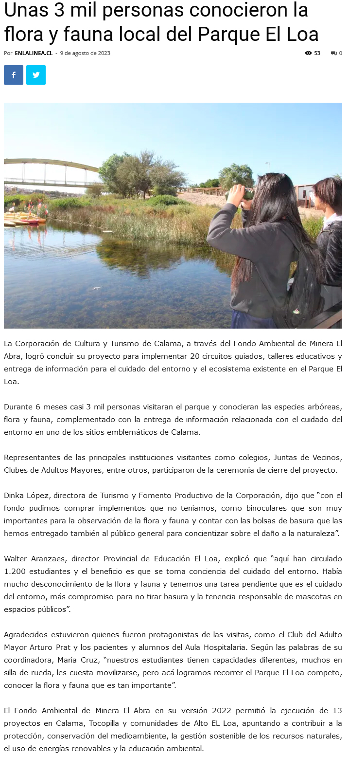 Tres mil personas conocieron la flora y fauna del Parque El Loa - (El Mercurio de Calama)