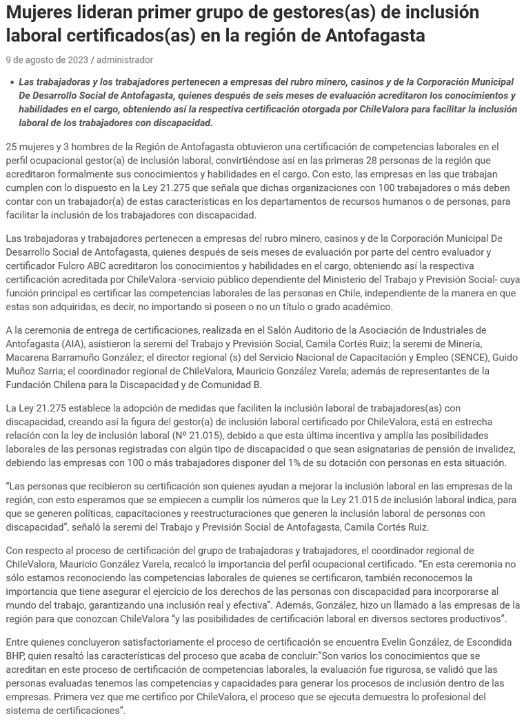 Mujeres lideran primer grupo de gestores(as) de inclusión laboral certificados(as) en la región de Antofagasta - (antofagastanoticias)
