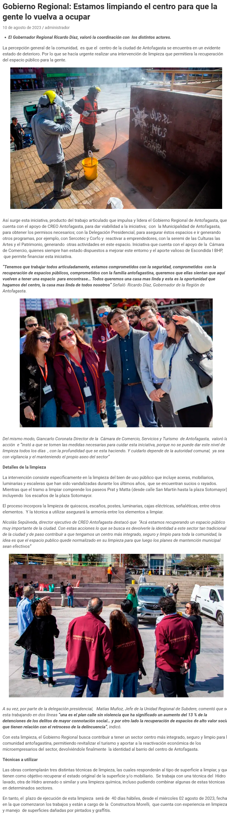 Recuperación del Centro de Antofagasta: Autoridades ejecutan trabajo mancomunado para la limpieza del sector - (madero.cl)
