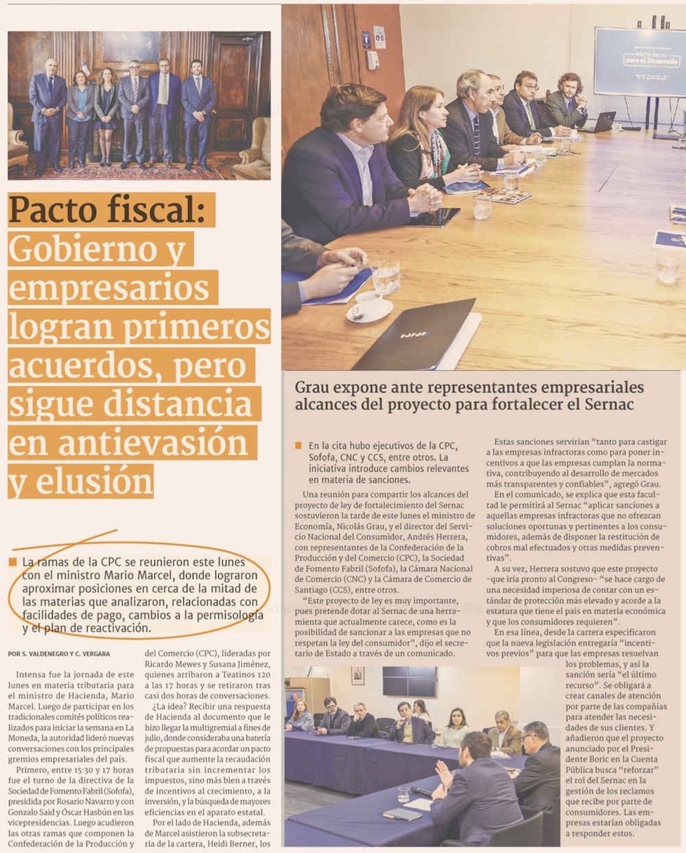 Pacto fiscal: Hacienda y CPC definen cinco ejes prioritarios y Marcel alista primer encuentro con oposición - (Pulso)