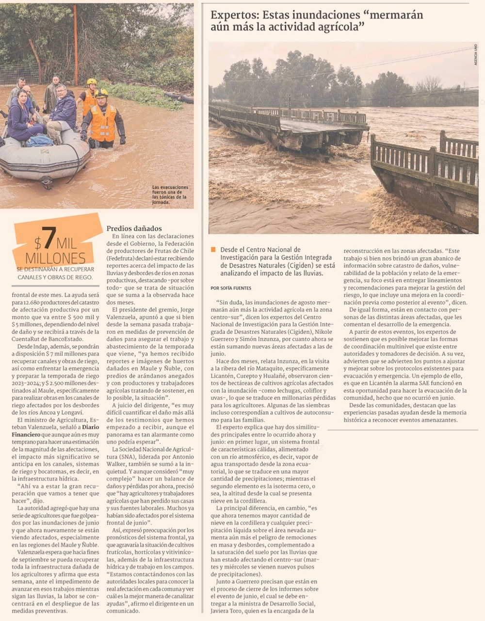 Gobierno decreta zona de catástrofe en cuatro regiones, mientras sistema frontal se reactiva - (El Mercurio de Santiago)