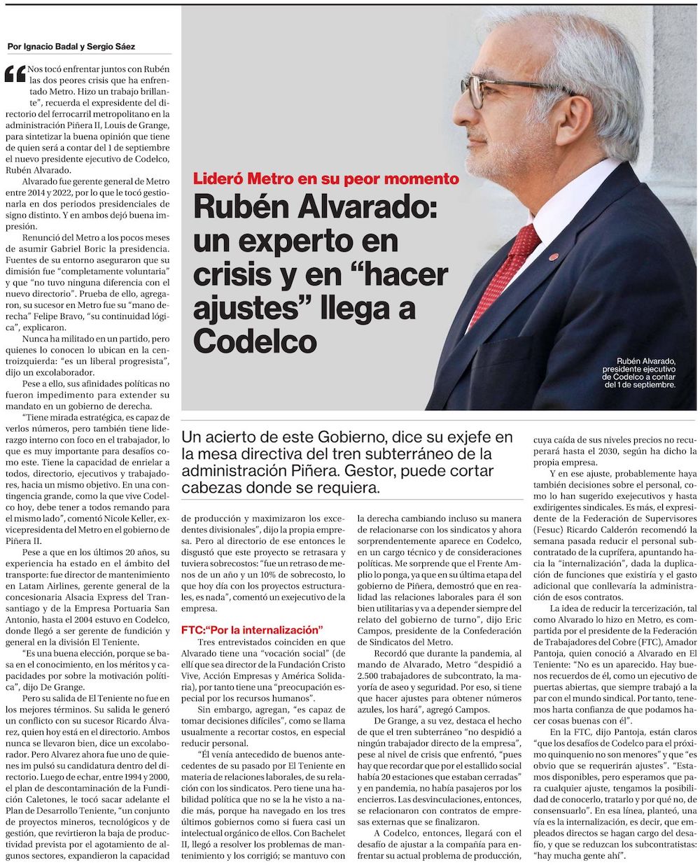 Costos, proyectos y producción: los desafíos de Rubén Alvarado al asumir como CEO de Codelco - (Diario Financiero)