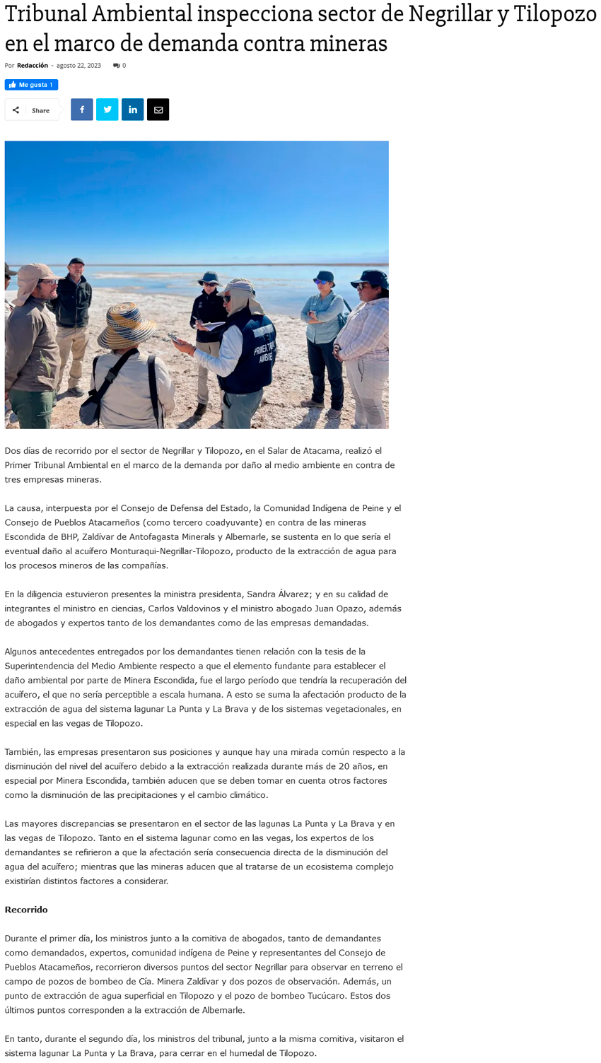 Primer Tribunal Ambiental inspecciona sector de Negrillar y Tilopozo para determinar eventual daño al medioambiente - (antofagastanoticias)