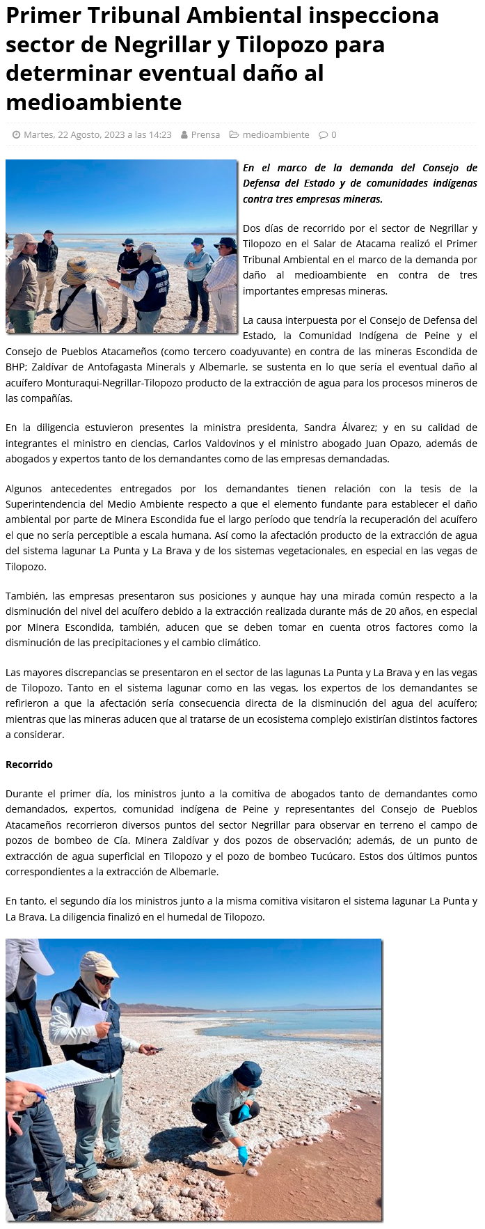 Tribunal Ambiental inspecciona sector de Negrillar y Tilopozo en el marco de demanda contra mineras - (regionalista.cl)