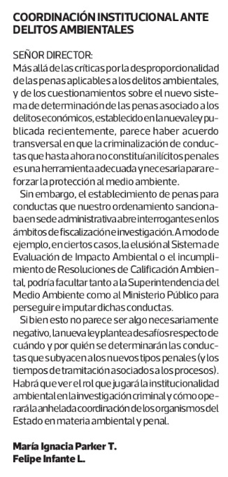 Coordinación institucional para delitos ambientales - (Diario Financiero)