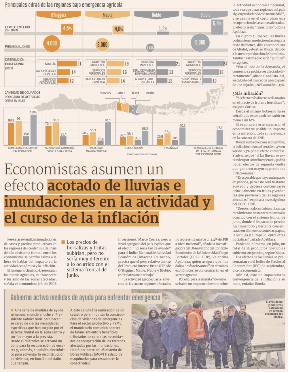 ¿Presionará a la inflación?: Análisis al efecto económico de las históricas lluvias - (emol)