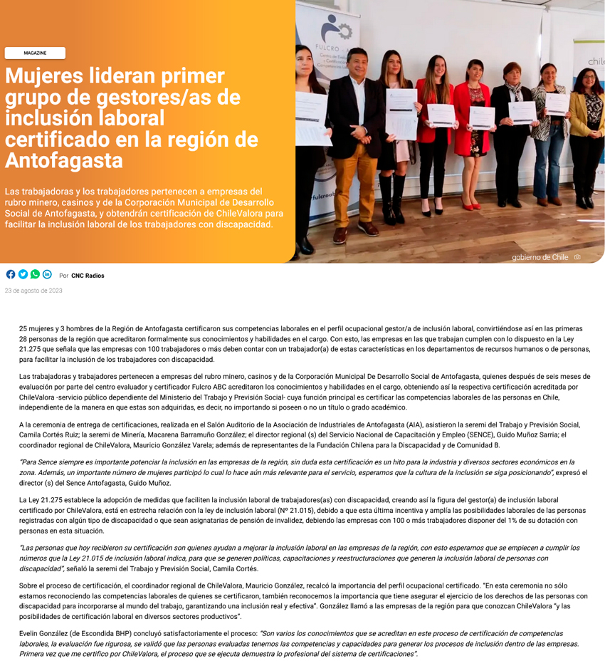 Mujeres lideran primer grupo de gestores/as de inclusión laboral certificado en la región de Antofagasta - (fmplus.cl)