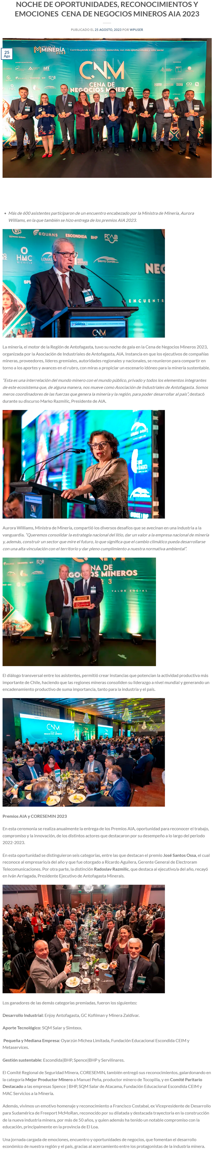 Noche de oportunidades, reconocimientos y emociones en Cena De Negocios Mineros AIA 2023 - (norteyenegia.cl)